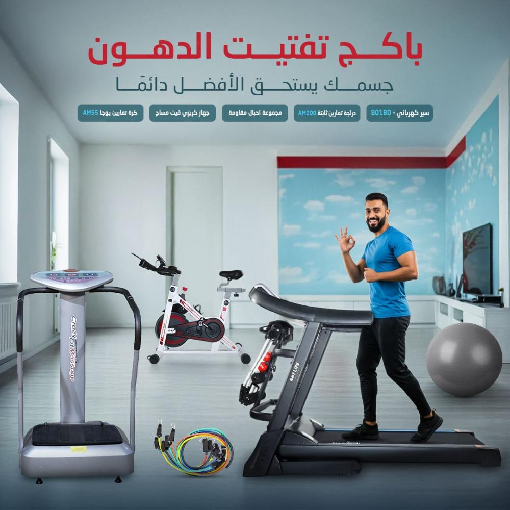 باكج تفتيت الدهون جهزنا لك مجموعة متكاملة من الأجهزة الرياضية اللي تغطي كل احتياجاتك من الكارديو، القوة، والتحفيز العضلي، عشان تبدأ رحلتك الصحية بسهولة وبأفضل جودة.