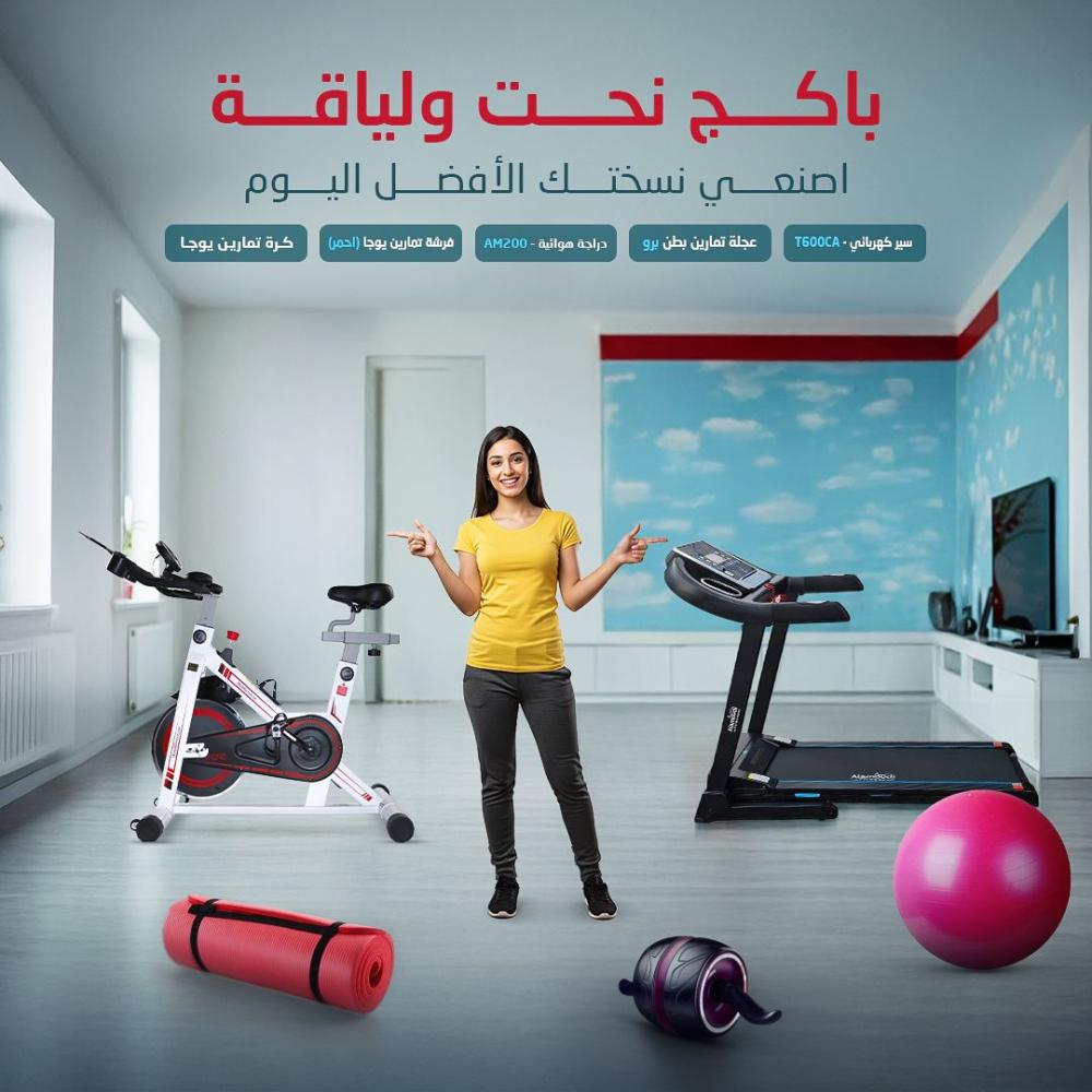ابدأ يومك بتمارين خفيفة باستخدام الحزام المرن، ثم انتقل إلى السير الكهربائي والدراجة لتعزيز حرق الدهون، واختتم جلستك بتمدد مريح على فرشة اليوجا. التوازن هو السر لتحقيق أفضل النتائج!