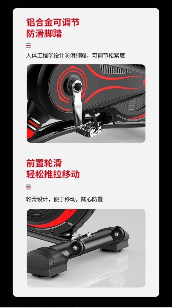 - الدواسات: خليط معدني من الالمونيوم مع احزمة قابلة للتعديل .