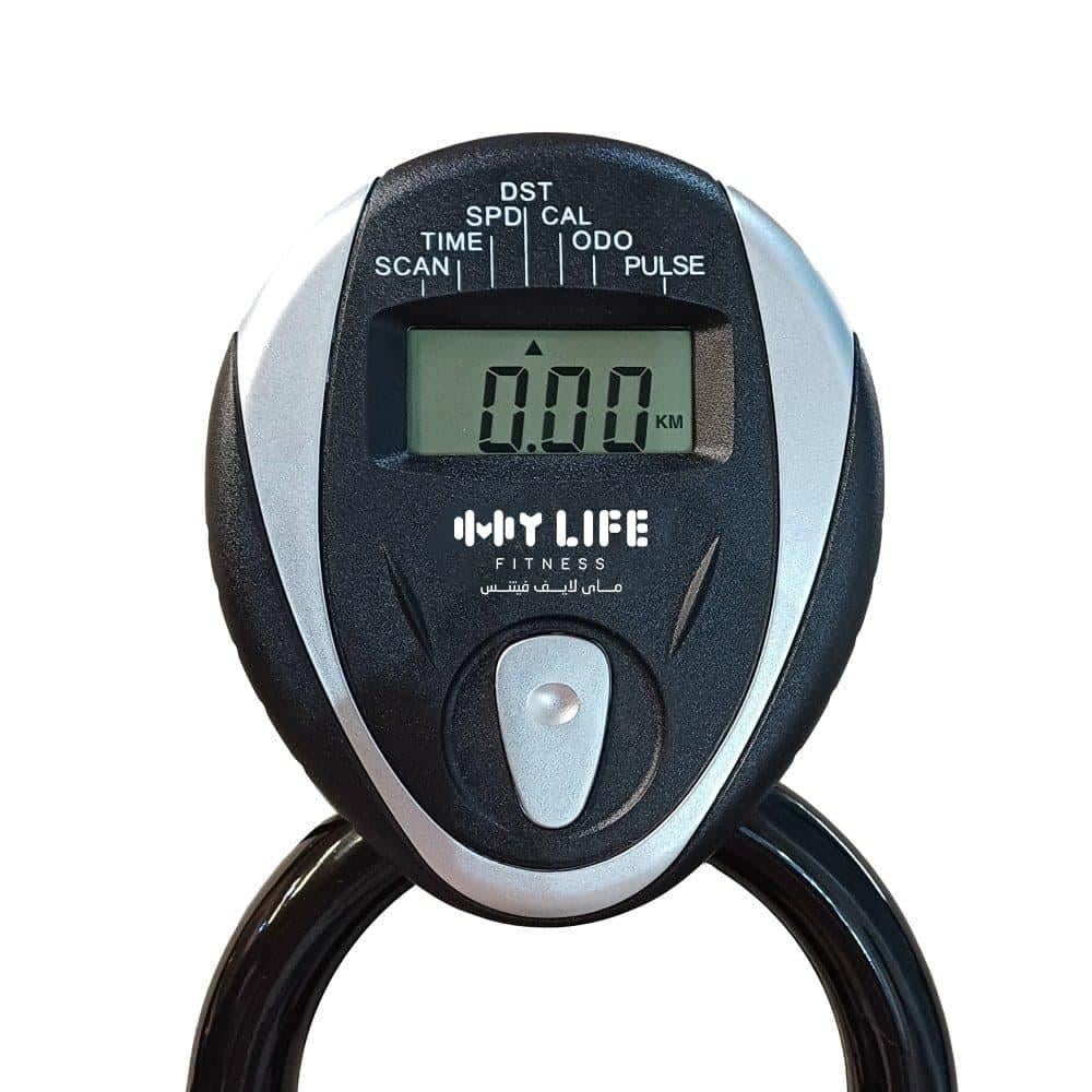 - الشاشات : 5 شاشات (السرعة - المسافة - الزمن - نبضات القلب - السعرات الحرارية) .