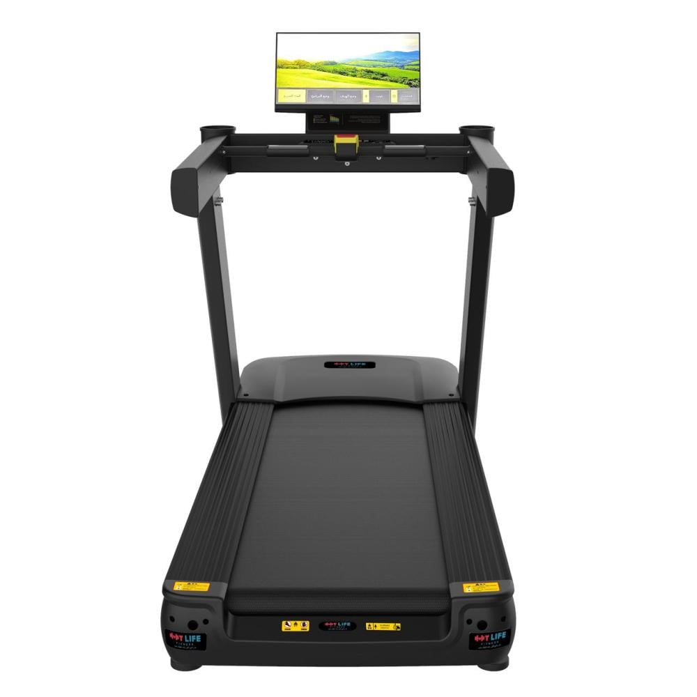 يتميز الجهاز بشاشة لمس LED مقاس 21.5 بوصة تعرض كل تفاصيل تمرينك بوضوح — السرعة، الوقت، المسافة، السعرات، نبض القلب، والانحدار.