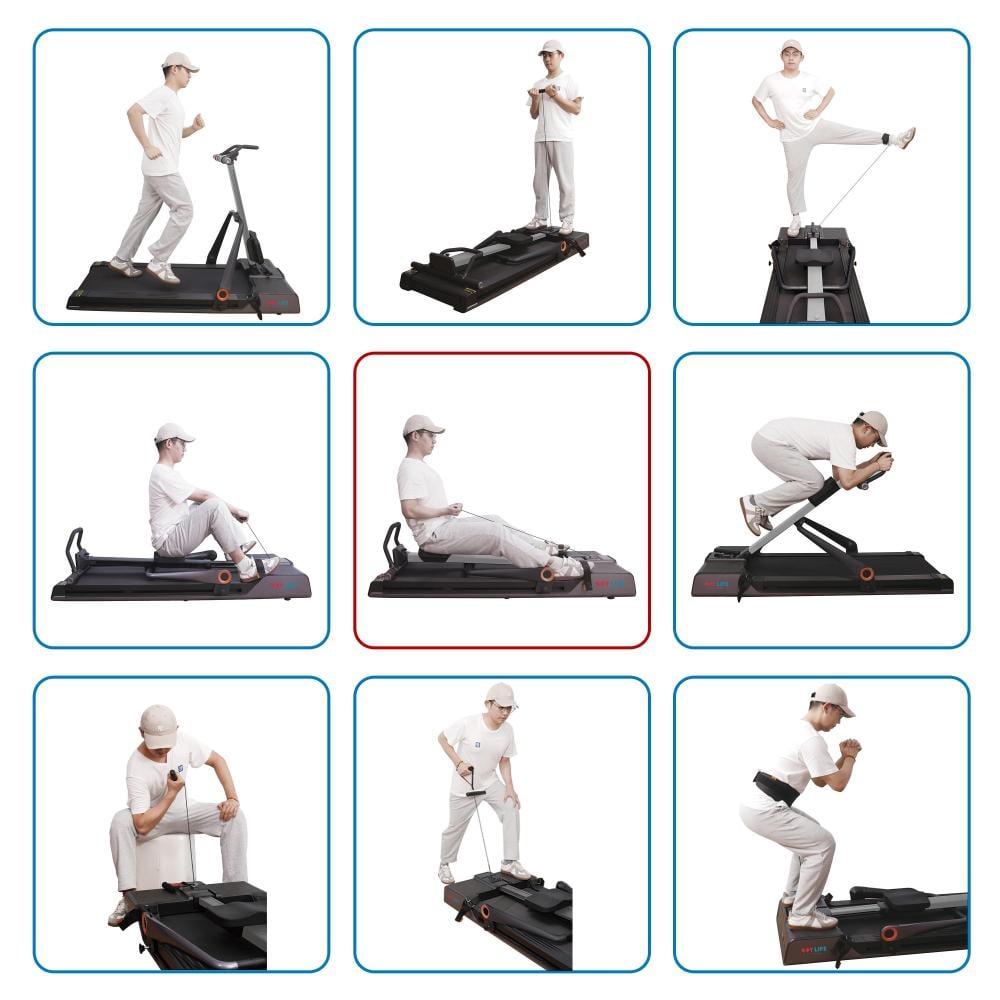 استمتع بصالة رياضية متكاملة داخل منزلك مع جهاز المشي الكهربائي متعدد الوظائف 4 في 1، الذي يدمج بين التمارين القلبية وتمارين القوة وتشكيل العضلات في تصميم ذكي واحد سهل التخزين.